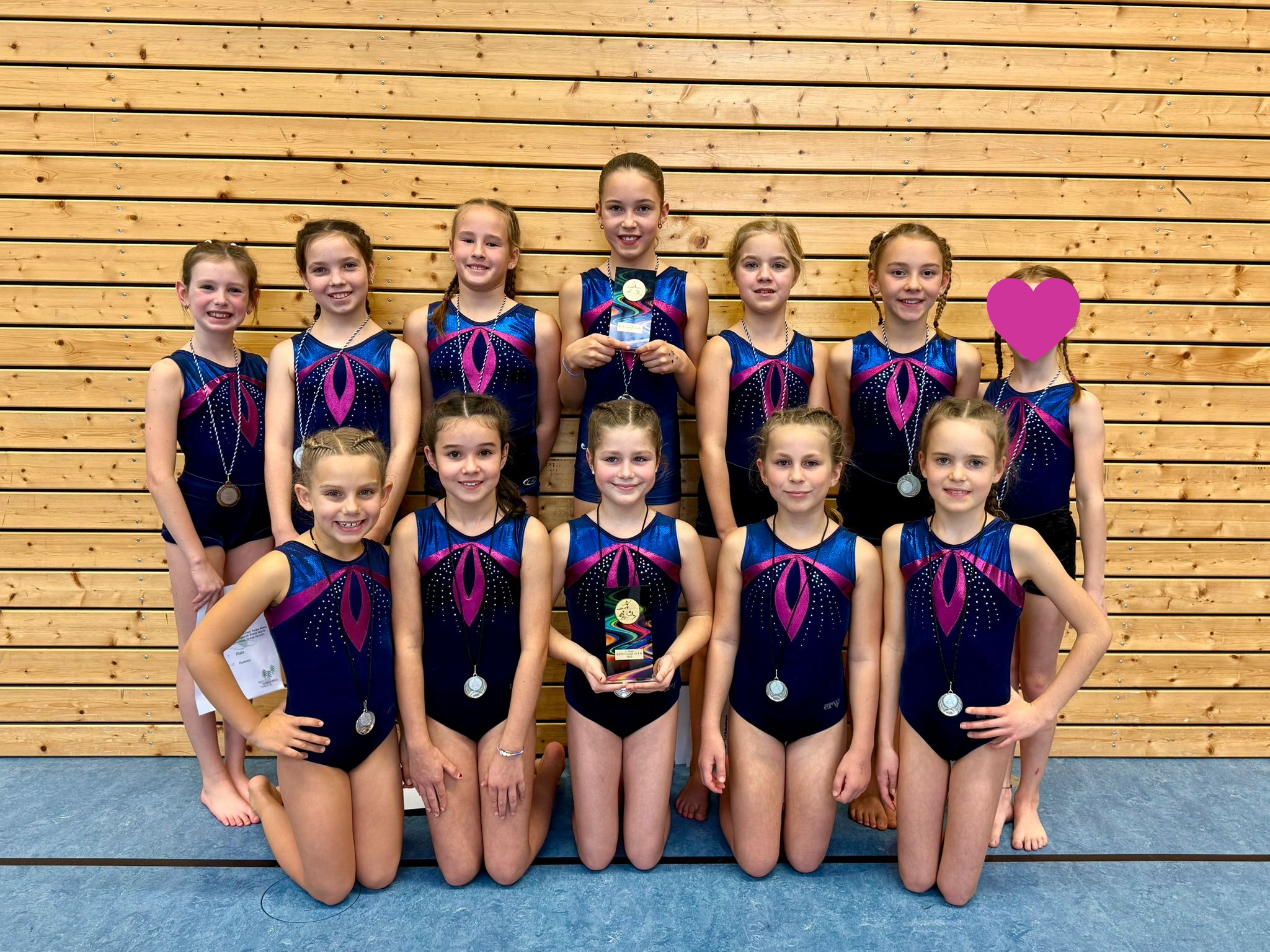 Zwei Mannschaftssiege der Mädchen in der Gauliga 2025 für den TuS Bräunlingen Ungeschlagen und mit zehn Gewinnpunkten Vorsprung vor dem Zweitplatzierten dem TV Donaueschingen (20:10, 80:32 Gerätepunkte), gewannen die Turnerinnen des TuS