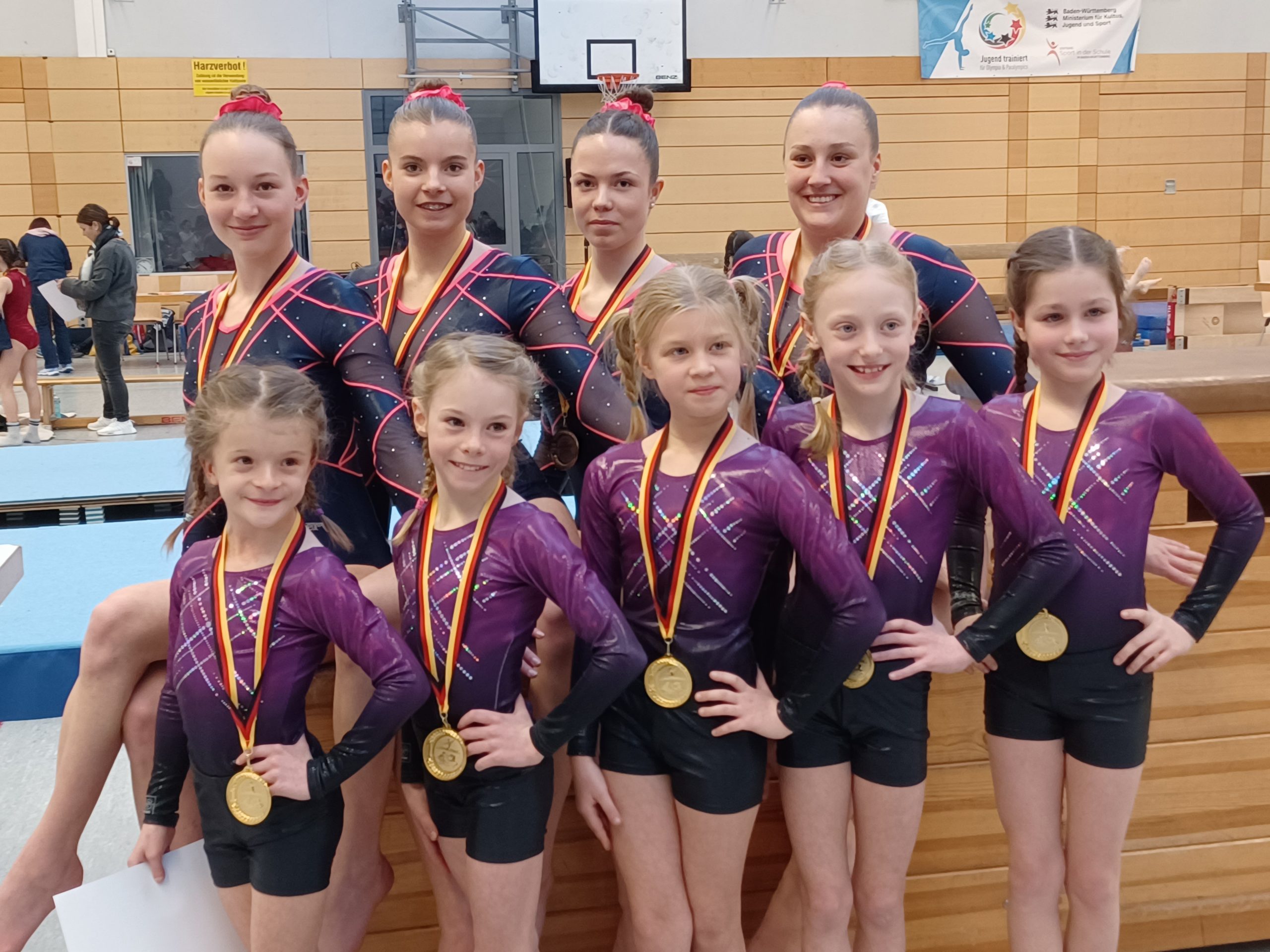 Zwei Mannschaftssiege der Mädchen in der Gauliga 2025 für den TuS Bräunlingen Ungeschlagen und mit zehn Gewinnpunkten Vorsprung vor dem Zweitplatzierten dem TV Donaueschingen (20:10, 80:32 Gerätepunkte), gewannen die Turnerinnen des TuS
